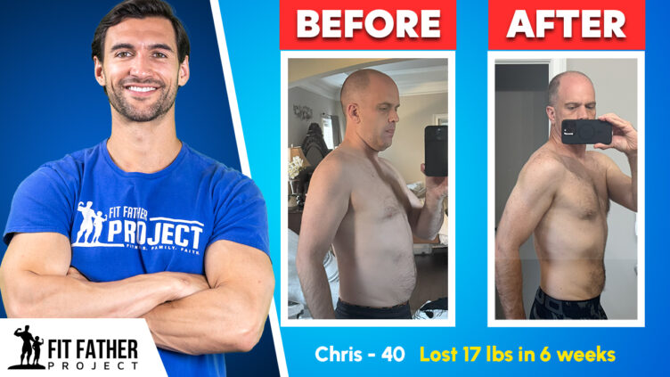Chris joined the Fit Father Foundations Program and committed himself to the process. In just six weeks, he dropped 17 pounds — even while traveling for work — and discovered a new structure for his eating and workouts that he could actually stick with. He leaned heavily on simple strategies like intermittent fasting, balanced plate meals, and daily accountability. These tools became his foundation for lasting success.